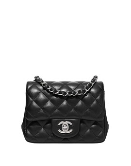 샤넬 미니 플랩백 램스킨 & 실버 메탈 블랙..