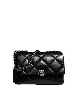 샤넬 19 맥시 핸드백 램스킨 & 골드 메탈 블..