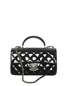 샤넬 핸들 장식의 미니 플랩백 페이턴트 카프스킨 & 골드 메탈 블랙 AS2431