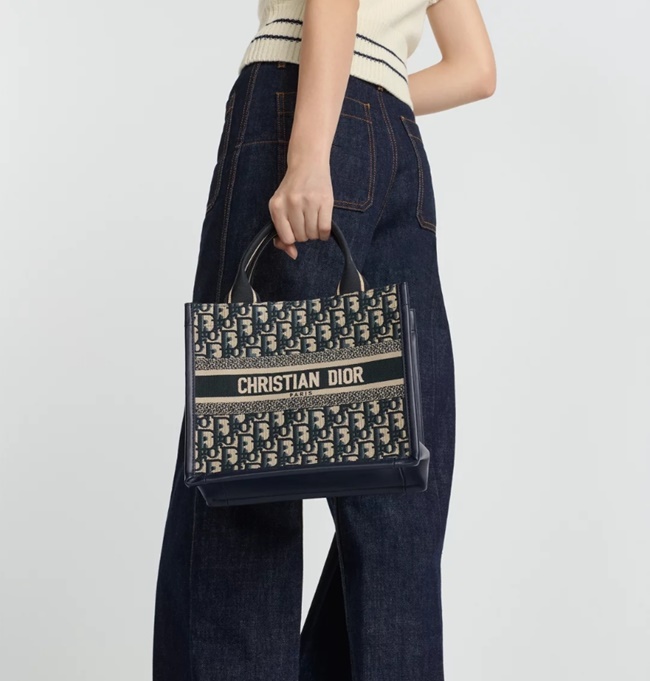 디올 Dior Book Tote 스몰백 블루 Dior Oblique 자수 송아지 가죽