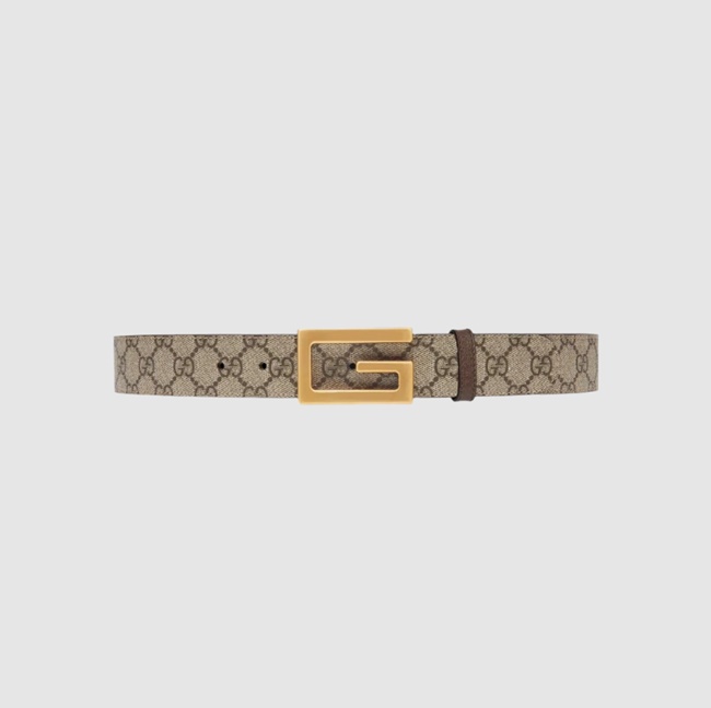 구찌 리버시블 벨트 스퀘어 G 버클 베이지 에보니 GG 슈프림