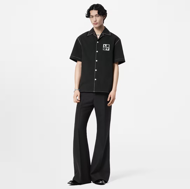 루이비통 엠브로이더드 쇼트 슬리브드 코튼 셔츠