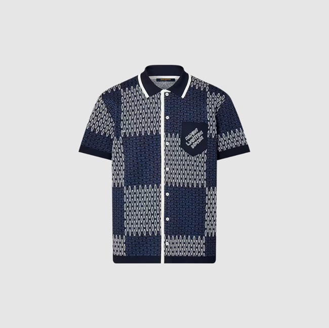 루이비통 다미에 자카드 쇼트 슬리브드 코튼 저지 셔츠