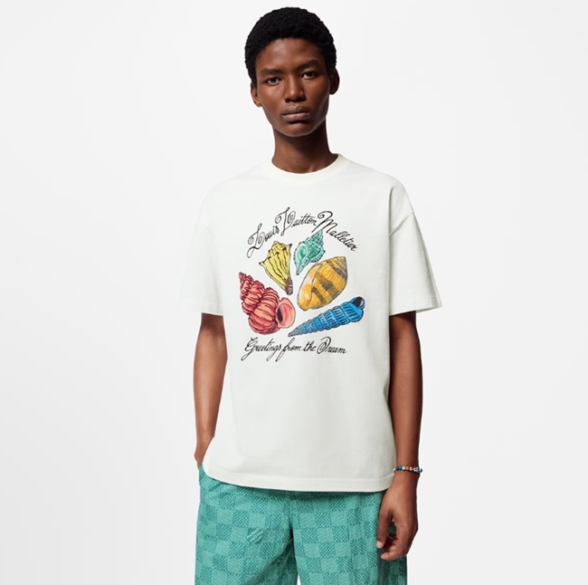 루이비통 그래픽 프린트 쇼트 슬리브 코튼 티셔츠