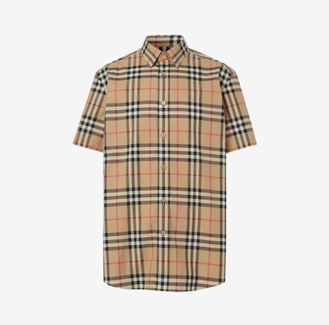버버리 숏 슬리브 체크 코튼 포플린 셔츠