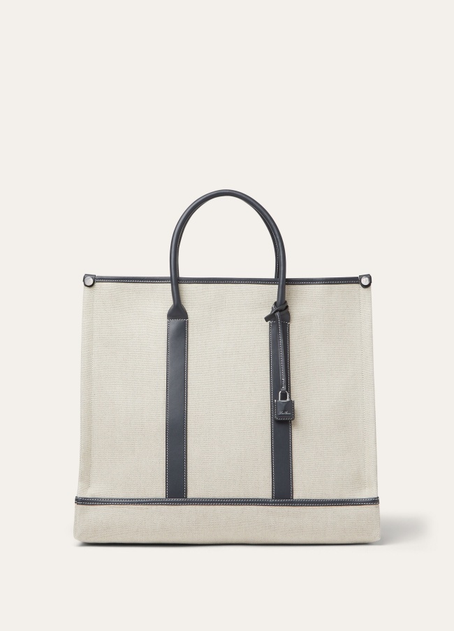 로로 피아나 코튼 빔 스몰 토트백 내추럴 스톤헨지 앤티크 실버
