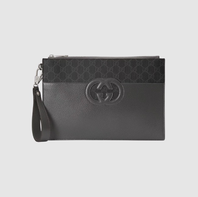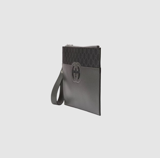 구찌 인터로킹 G 슈프림 컷아웃 파우치 블랙 그레이 723320