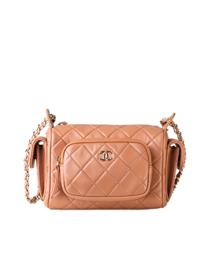 샤넬 스몰 카메라 케이스 샤이니 크럼플드 램스킨 & 골드 메탈 브라운 AS5220