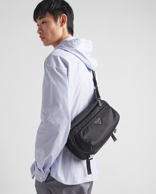 프라다 리나일론 및 사피아노 가죽 숄더백 블랙 2VH994