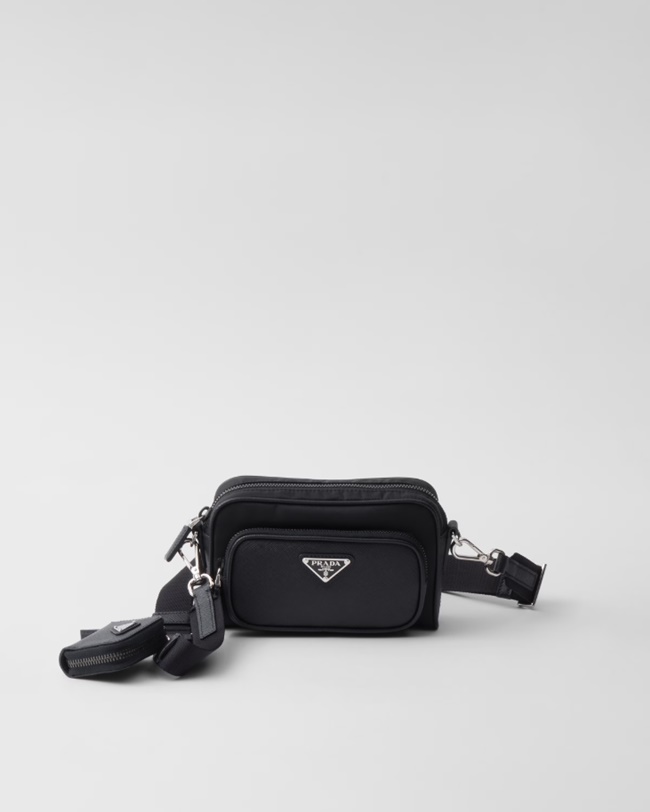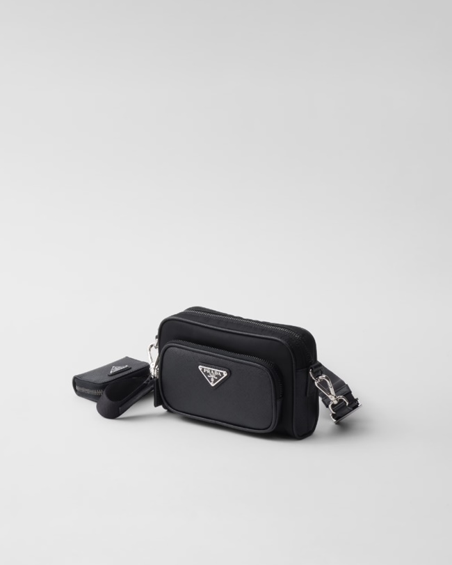 프라다 리나일론 및 사피아노 가죽 숄더백 블랙 2VH172