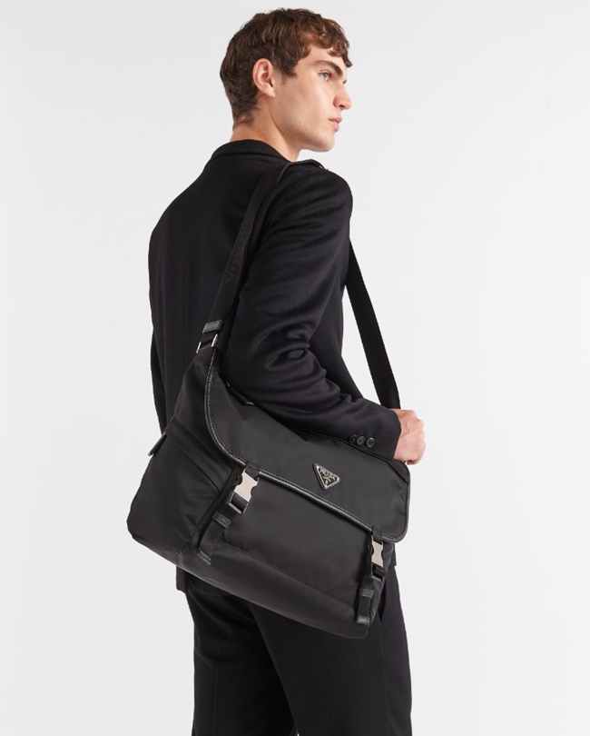 리나일론 및 사피아노 가죽 숄더백 블랙 2VD052