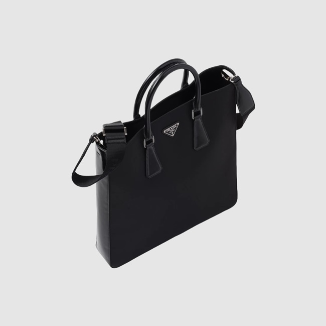 프라다 리나일론 브러쉬드 레더 토트백 블랙 2VG115