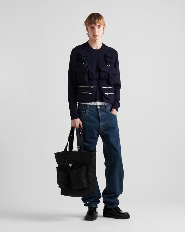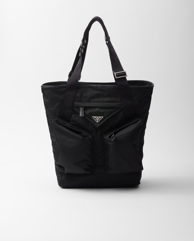 프라다 리나일론 및 가죽 토트백 블랙 2VG120