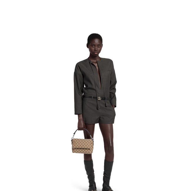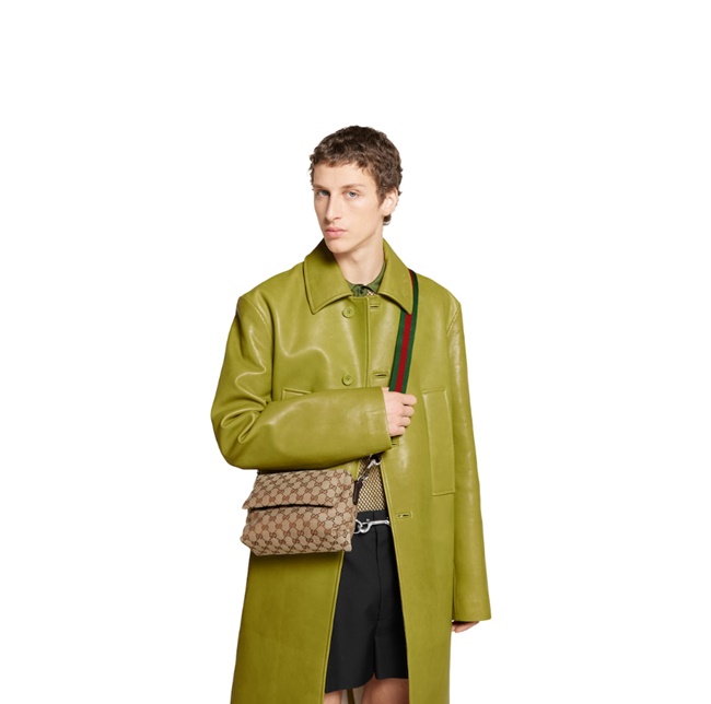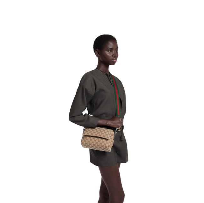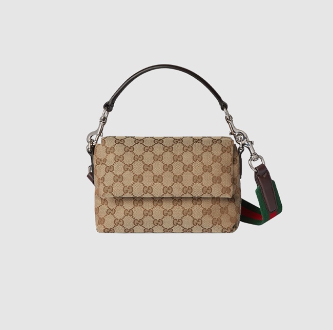 구찌 스몰 GG 크로스바디 백 웹 베이지 다크 브라운 821617