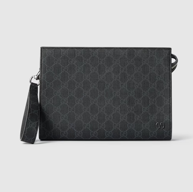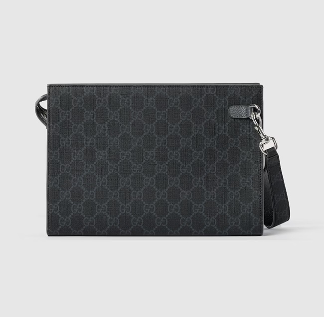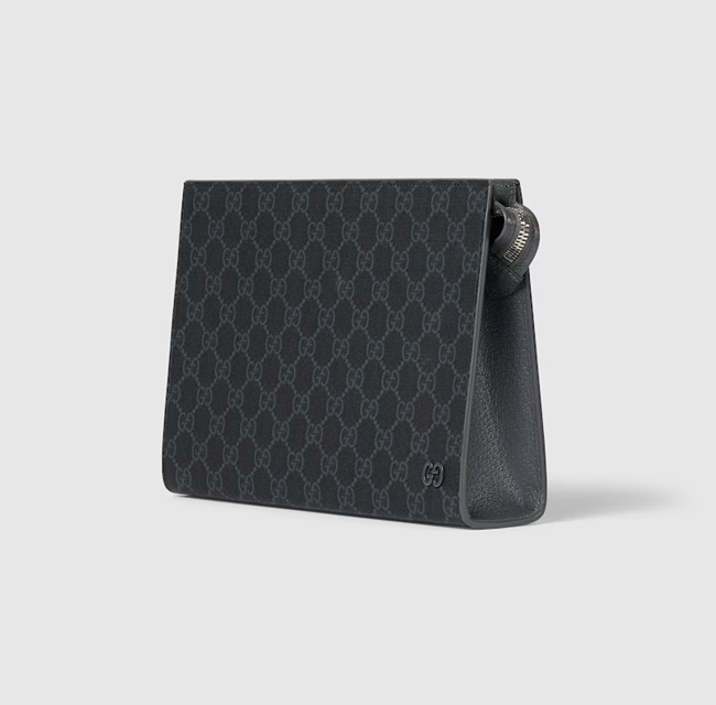 구찌 그레이 트리밍의 GG 파우치 블랙 수프림 캔버스 768255