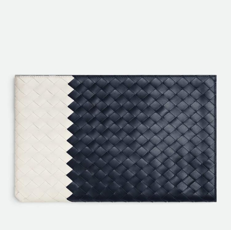 보테가베네타 인트레치아토 하프 지퍼 파우치 스페이스 화이트