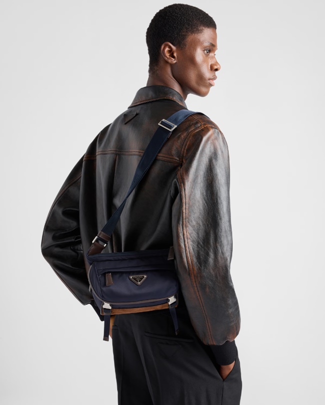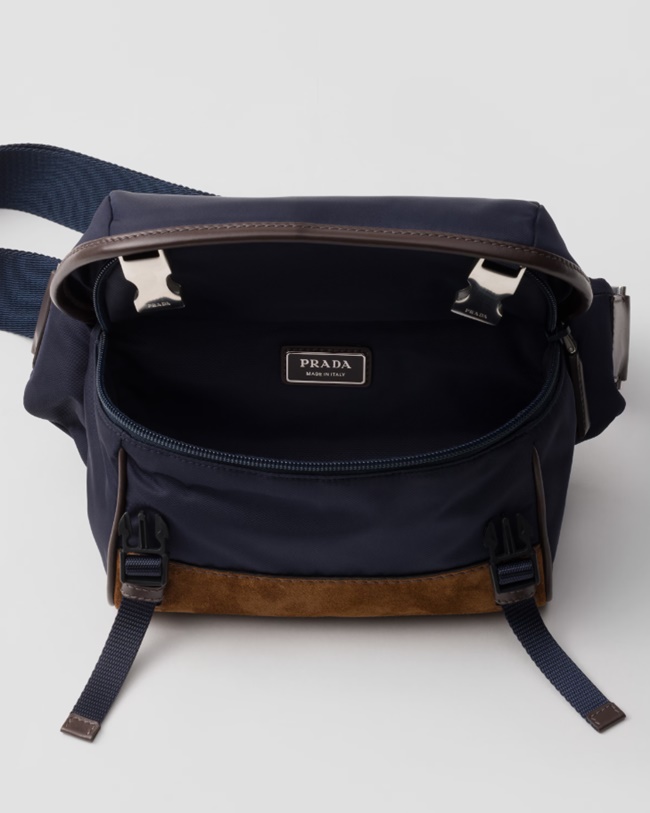 프라다 스몰 리나일론 및 가죽 숄더백 블루 커피 2VD066 20cm