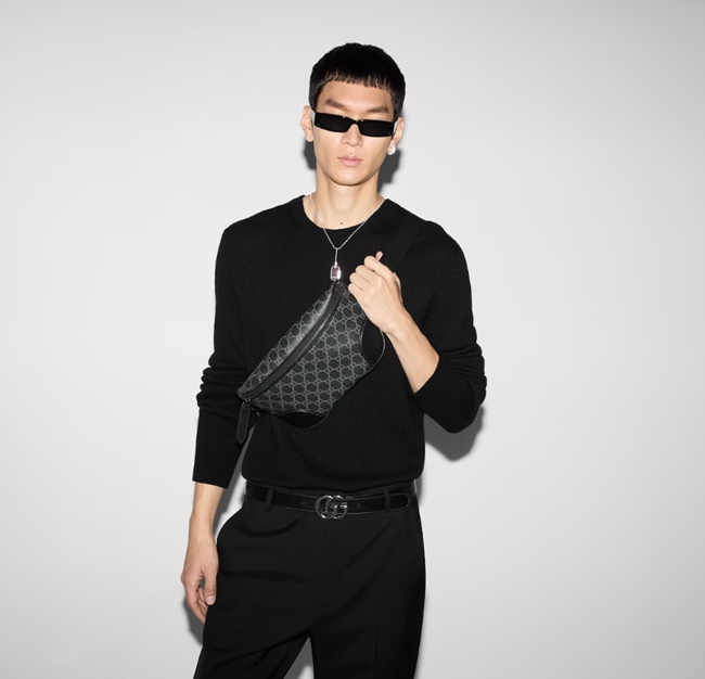 구찌 GG 엠블럼 미디움 벨트백 블랙 패브릭 821162