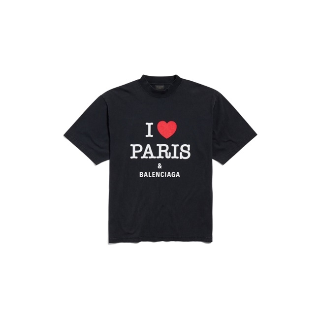 발렌시아가 아이 러브 파리 & 발렌시아가 미디엄 핏 티셔츠 페이드 블랙