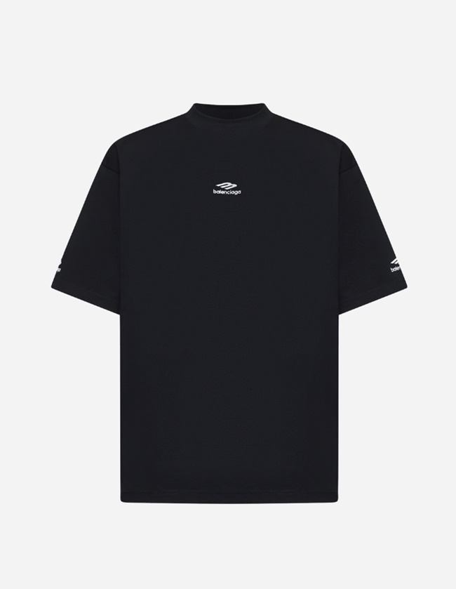 발렌시아가 멀티 로고 자수 코튼 티셔츠