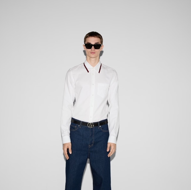 구찌 웹 디테일 옥스포드 코튼 셔츠