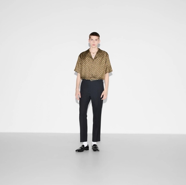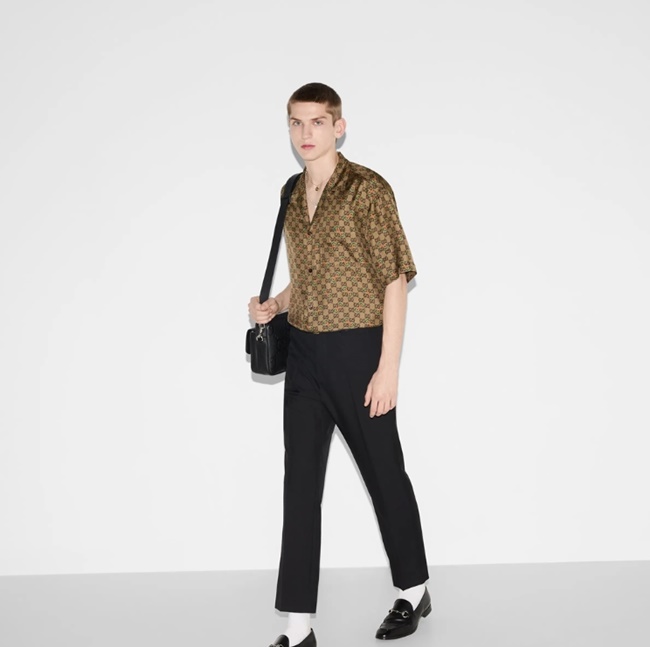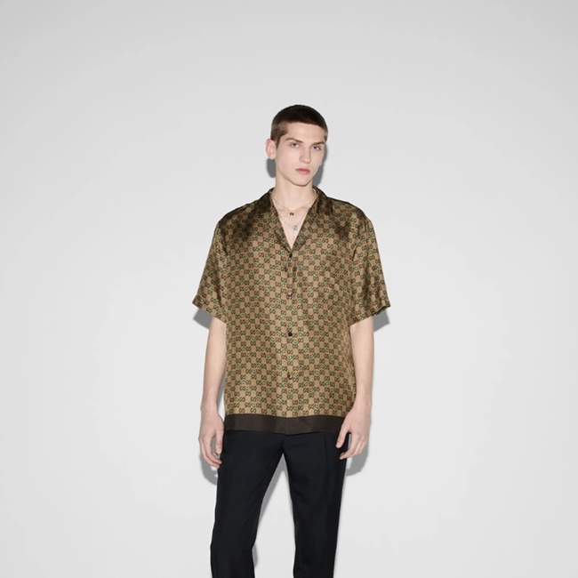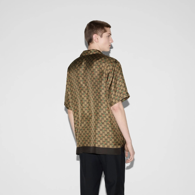 구찌 GG 호스빗 프린트 실크 트윌 셔츠
