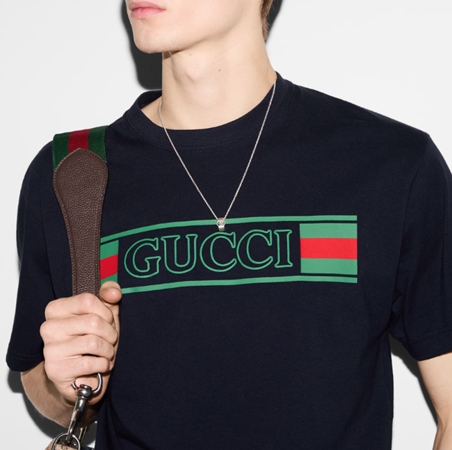 구찌 프린트 코튼 저지 티셔츠