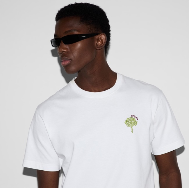 구찌 플라워 자수 코튼 티셔츠