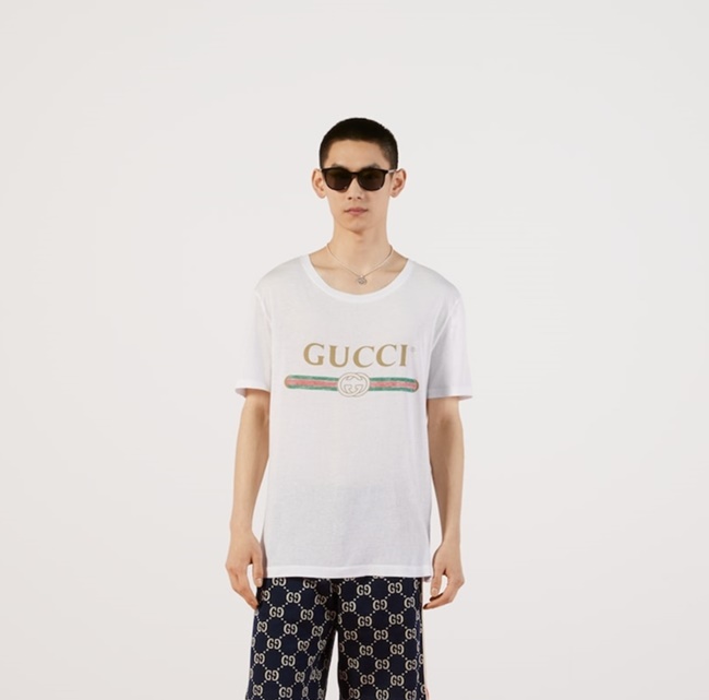 구찌 로고 프린트 코튼 티셔츠