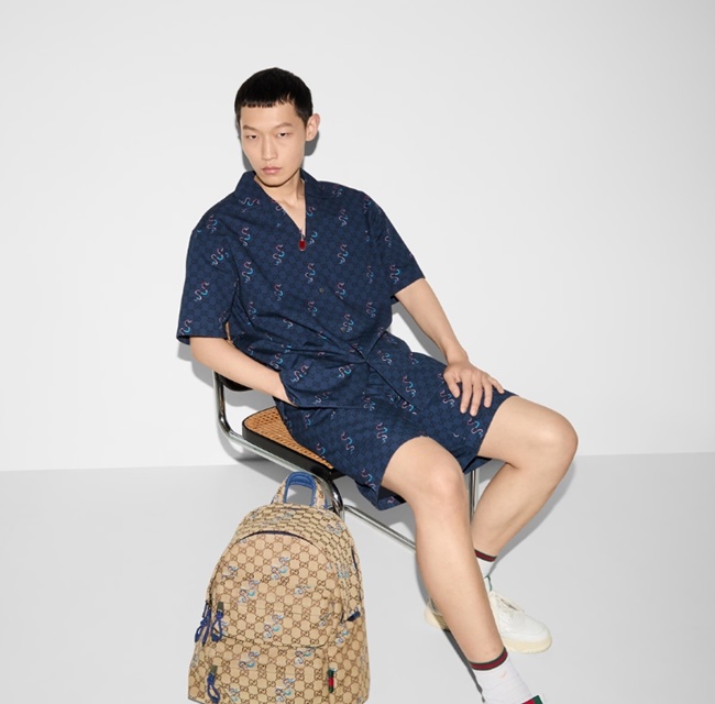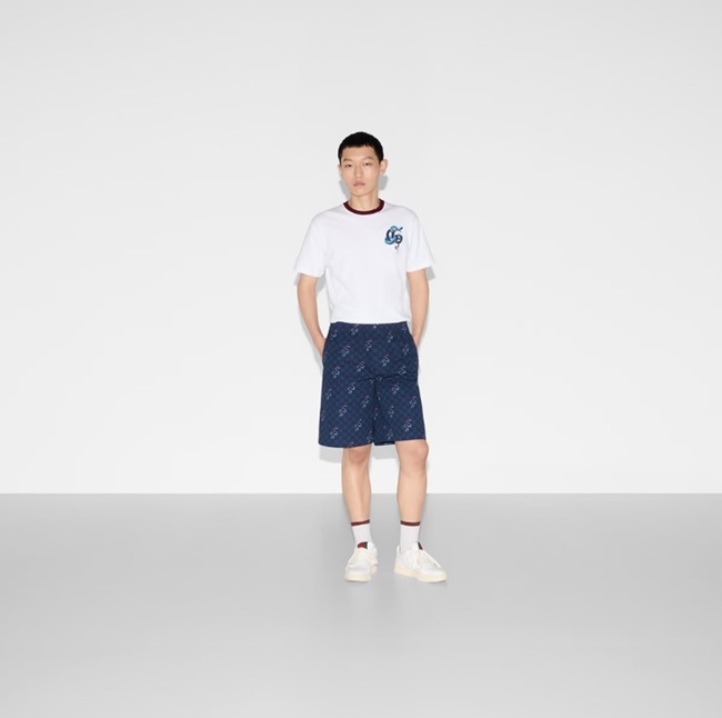 구찌 스네이크 프린트 립스탑 코튼 쇼츠