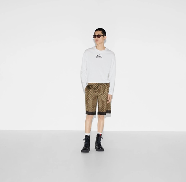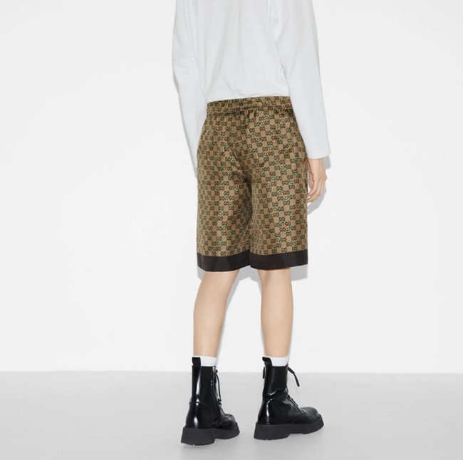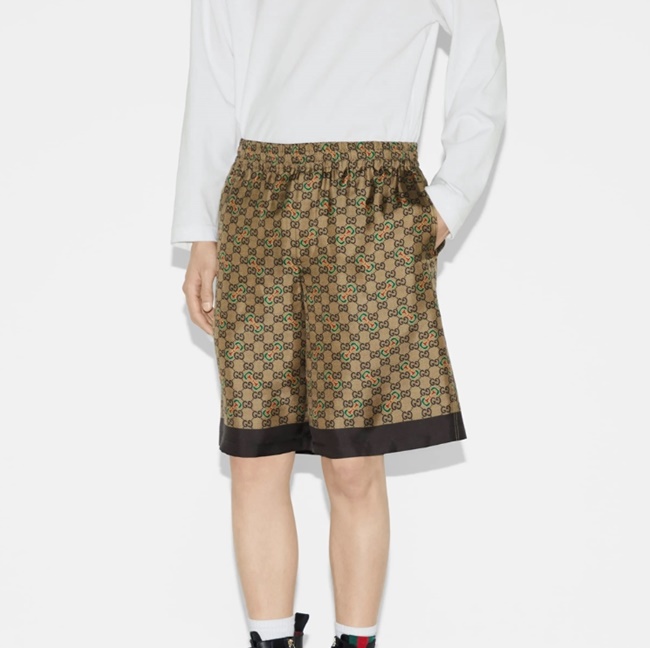 구찌 GG 홀스빗 프린트 실크 트윌 쇼츠
