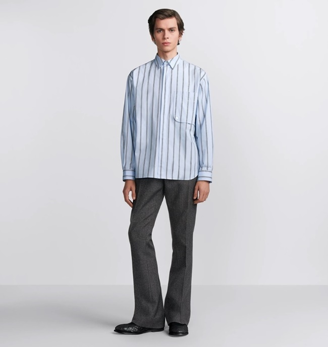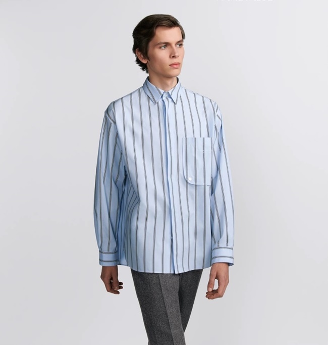 디올 스트라이프 코튼 크리스찬 꾸뛰르 자수 셔츠