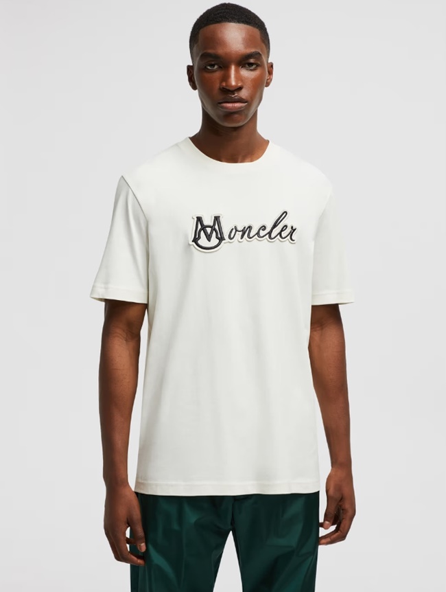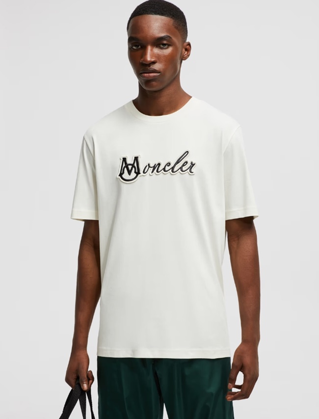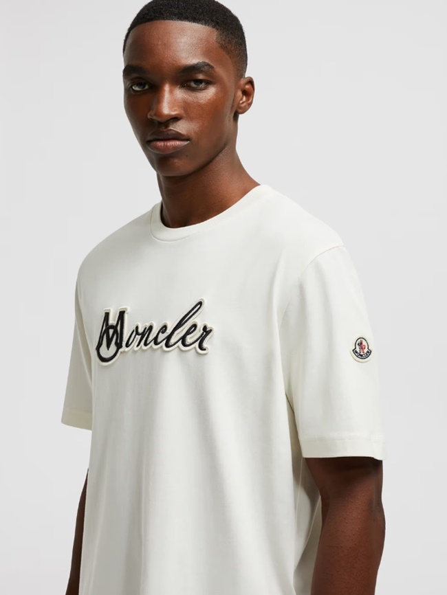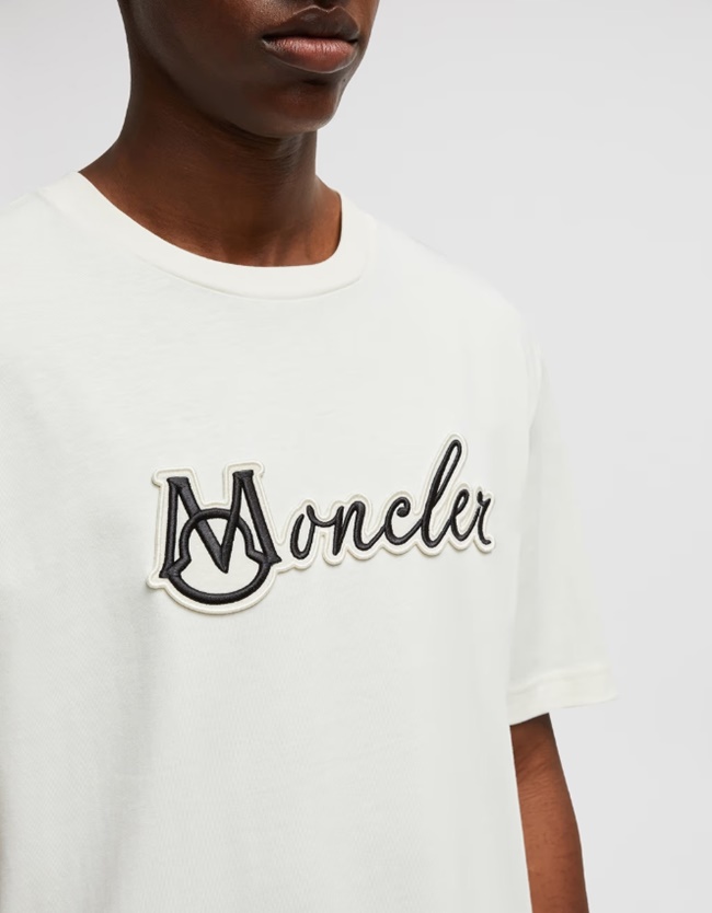 몽클레어 자수 바시티 로고 코튼 티셔츠