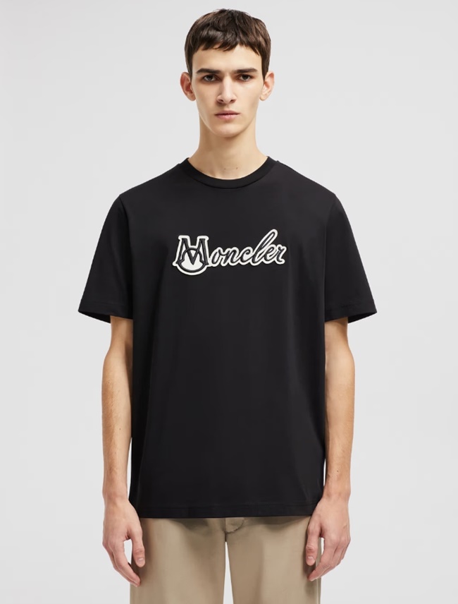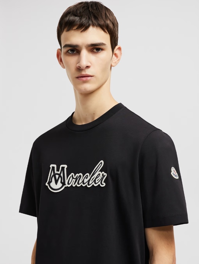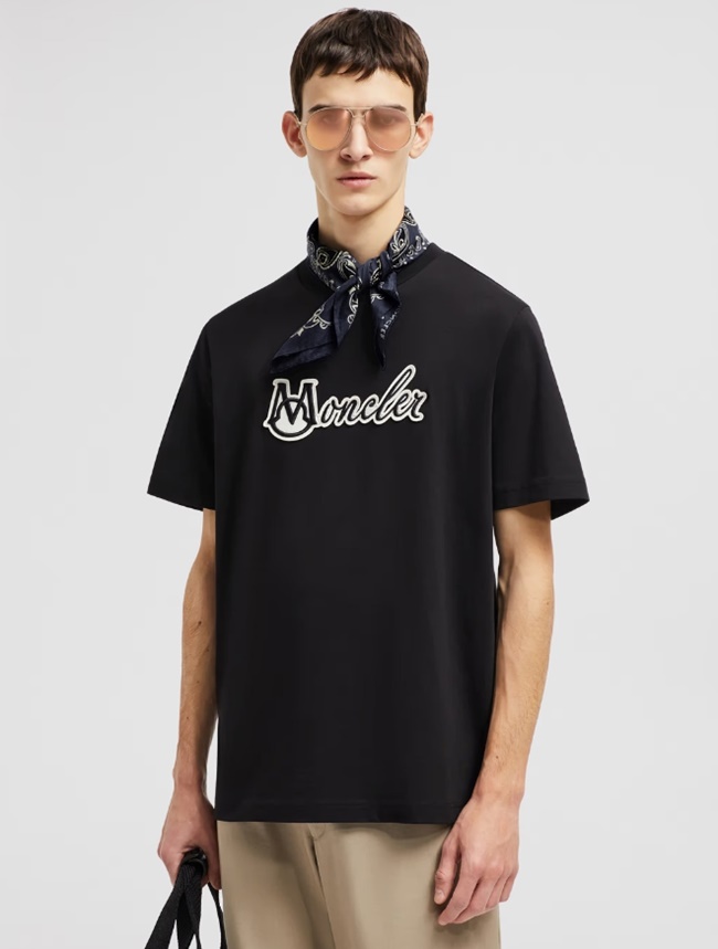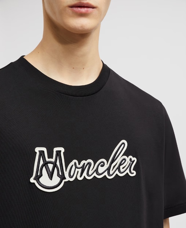 몽클레어 자수 바시티 로고 코튼 티셔츠