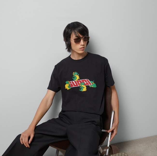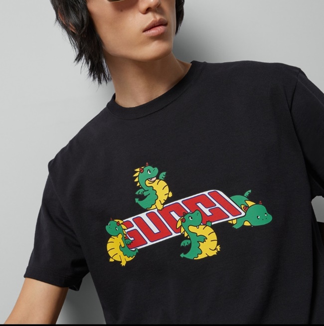 구찌 드래곤 프린트 코튼 저지 티셔츠