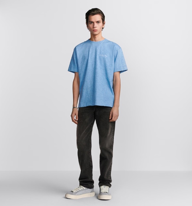 디올 디스트레스드-이펙트 코튼 저지 티셔츠
