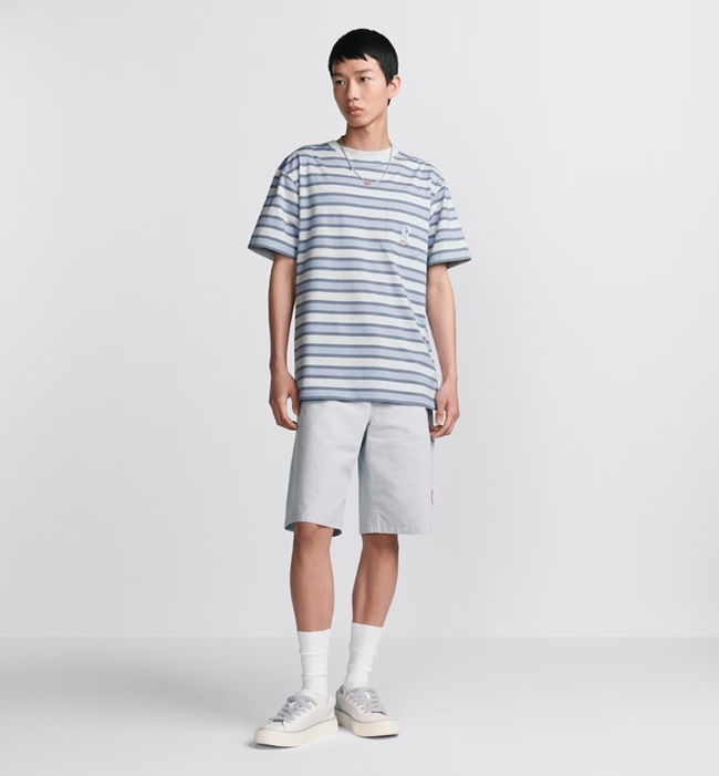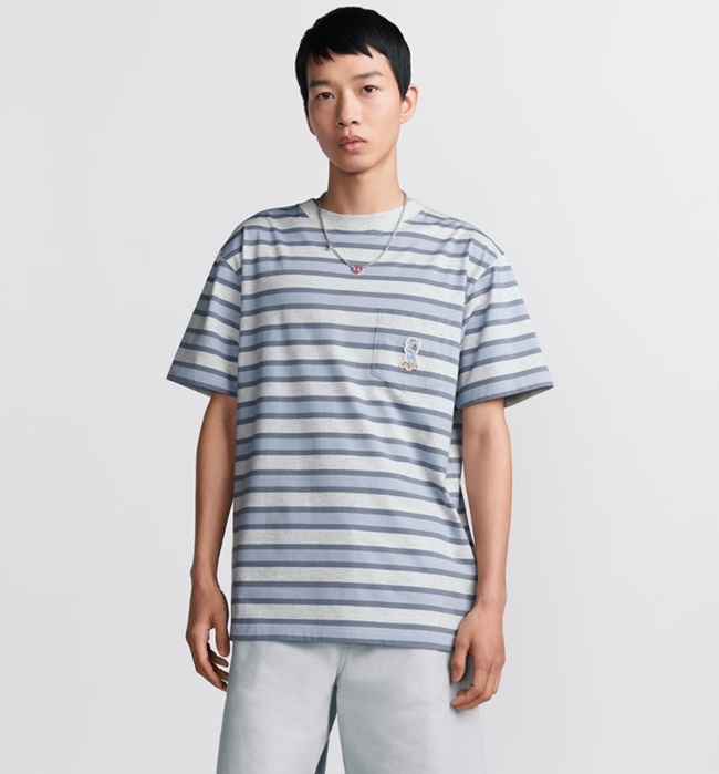 디올 스트라이프 패턴 포켓 티셔츠
