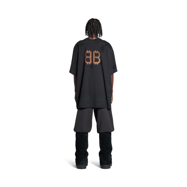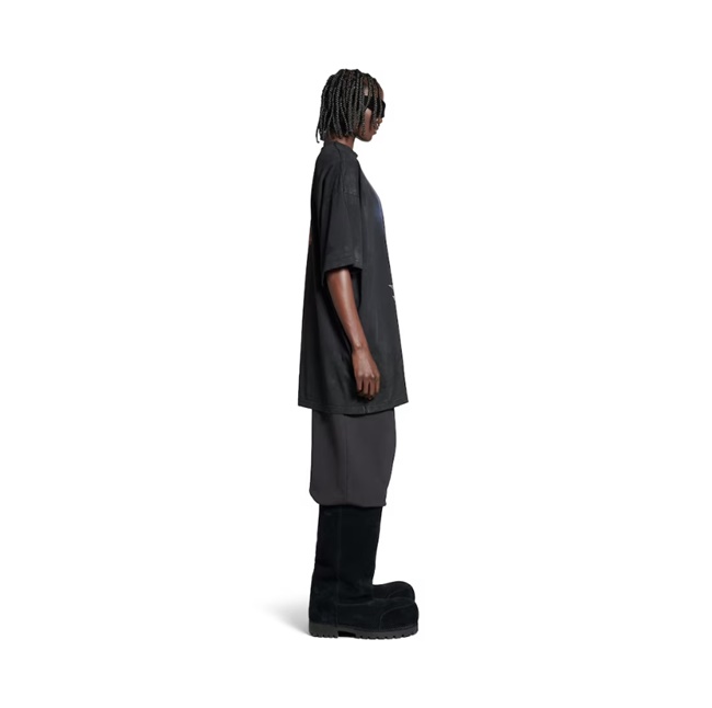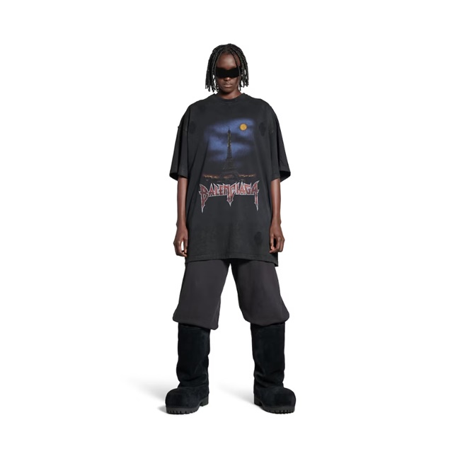 발렌시아가 파리 문 더블 프론트 오버사이즈 티셔츠 블랙