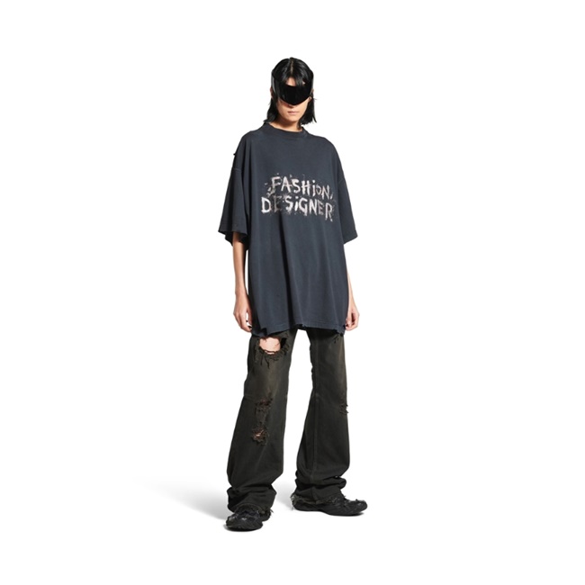 발렌시아가 패션 디자이너 오버사이즈 티셔츠 페이디드 블랙