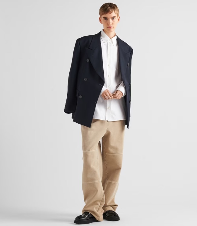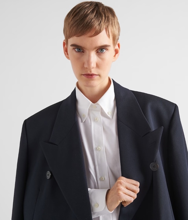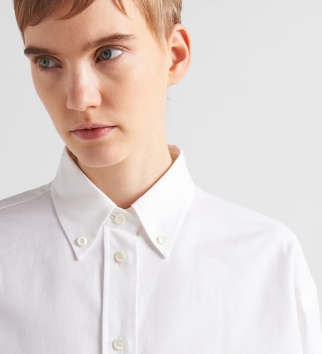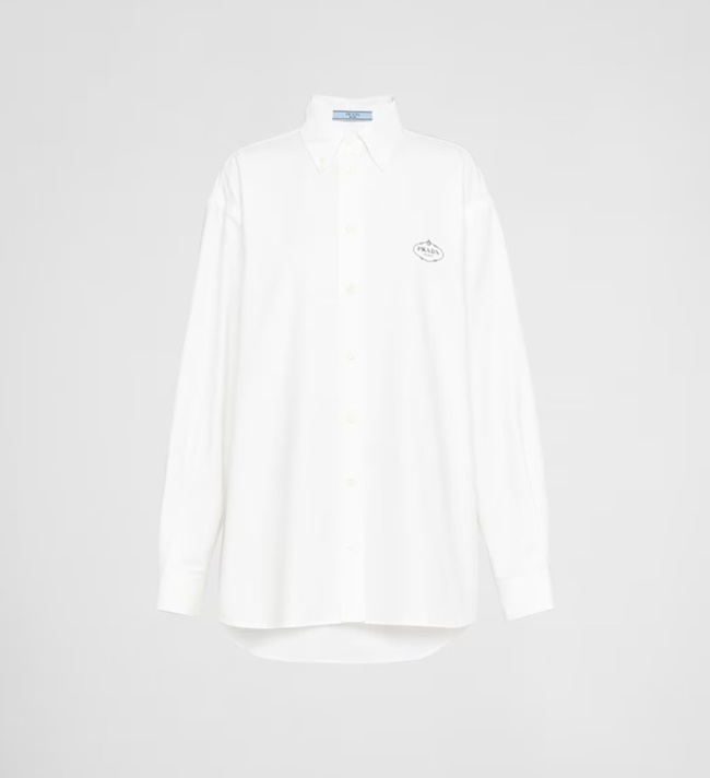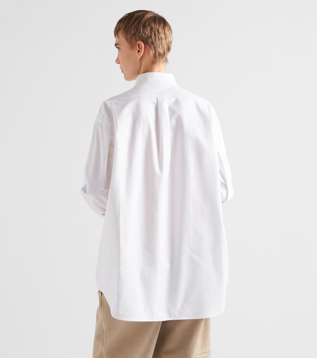 프라다 엠브로이더드 옥스포드 코튼 셔츠