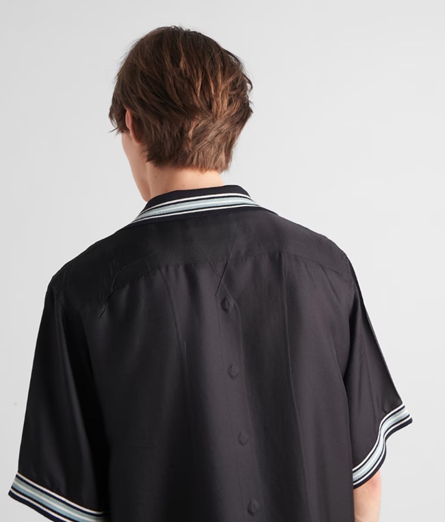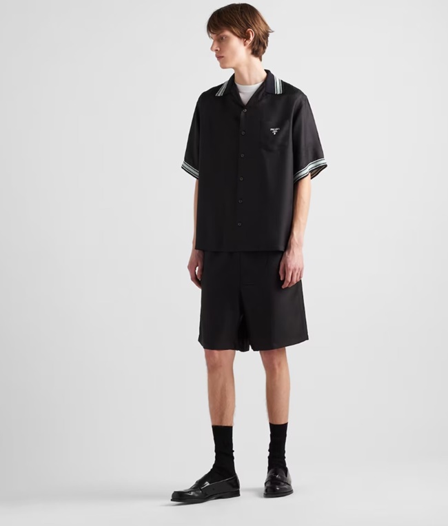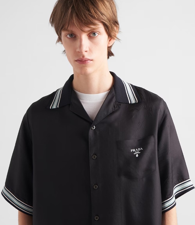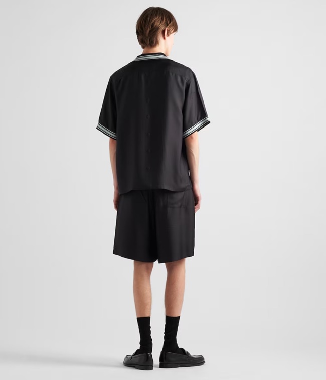 프라다 쇼트 슬리브 실크 트월 셔츠