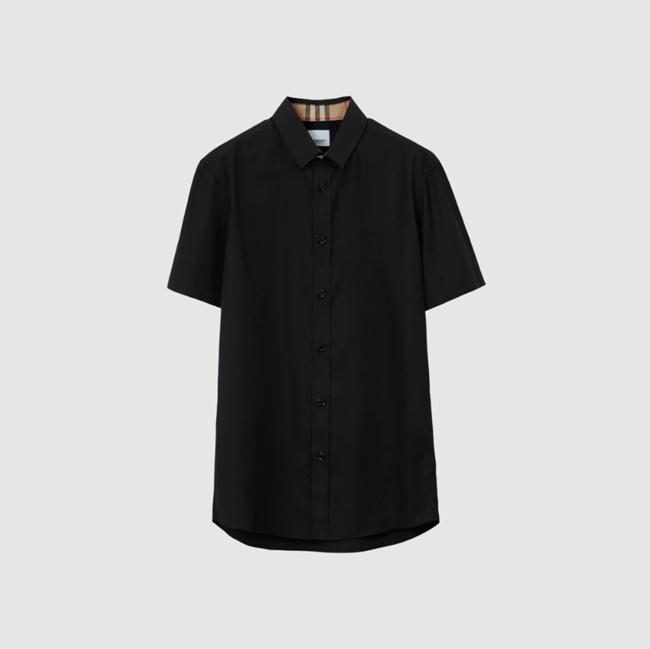 버버리 숏 슬리브 모노그램 모티프 스트레치 코튼 셔츠
