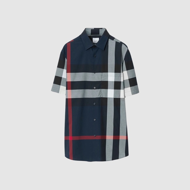 버버리 슬림핏 모노그램 모티프 스트레치 코튼 포플린 셔츠