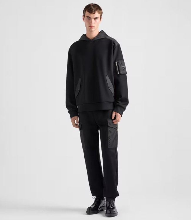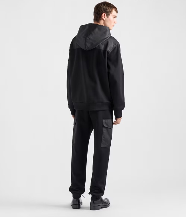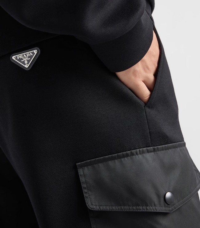 프라다 리나일론 코튼 플리스 조거 팬츠