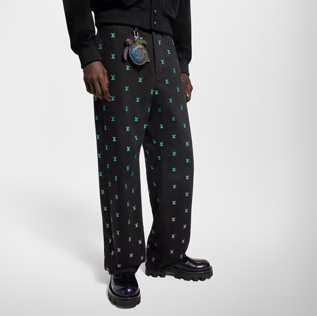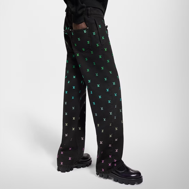 루이비통 LV 블라종 그라디언트 엠브로이더드 데님 스케이트 팬츠