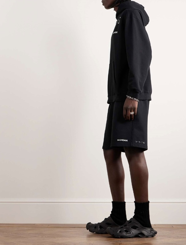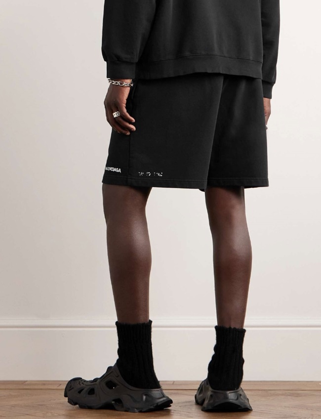 발렌시아가 스트레이트 레그 로고 프린트 코튼 쇼츠
