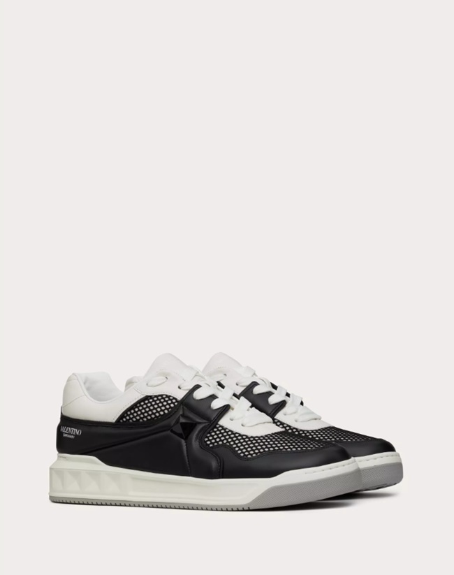 발렌티노 가라바니 원 스터드 로우탑 메시 및 나파 가죽 스니커즈