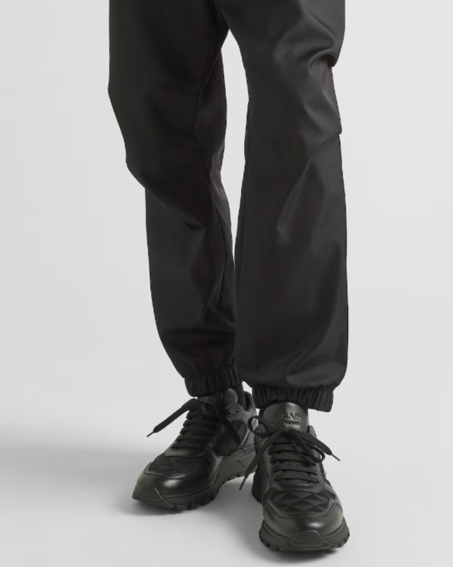 프라다 가죽 및 리나이론 하이탑 스니커즈