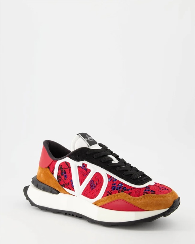 발렌티노 가라바니 레이스 메쉬 스니커즈 레드 브라운