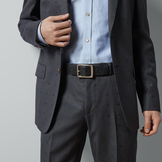 구찌 GG 러버 이펙트 레더 벨트 블랙 GG 레더